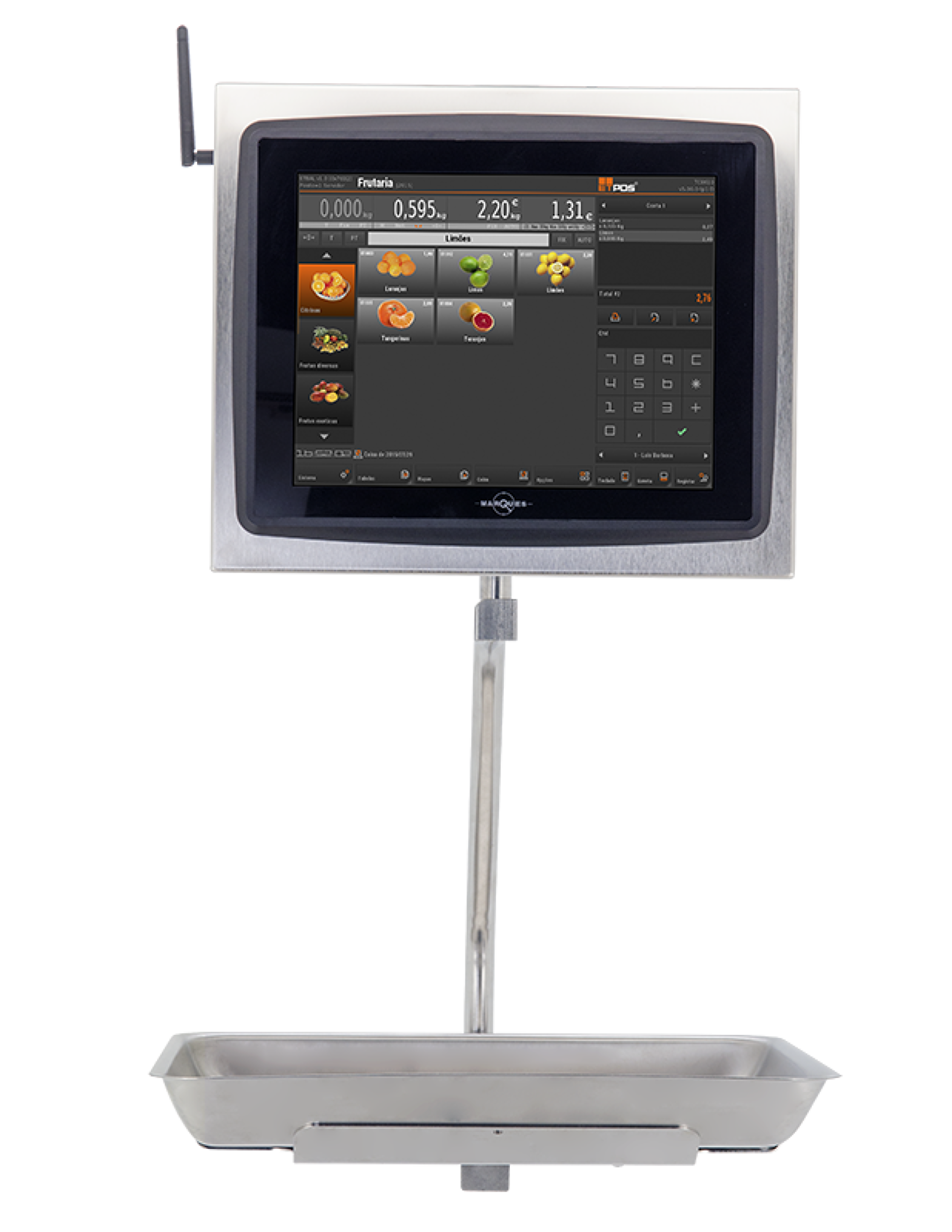 Balanza táctil BM5 xs colgante es ideal para pescaderías, carnicerías, mercados o sitios que necesitan espacio en la mesa de trabajo. Está homologada por la Comunidad Europea. Está fabricada con materiales de alta calidad. Construcción TOTALMENTE en acero inoxidable duradero y elegante. Consta de impresora integrada, que permite entregar a cada venta el tíquet al cliente, conforme con la normativa vigente.